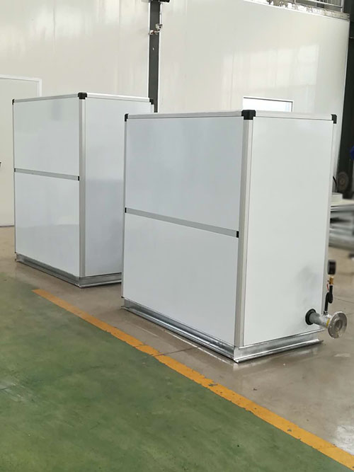 新風(fēng)防凍機(jī)組適用于北方地區(qū),包括風(fēng)溫度控制、防凍控制、以及各種連鎖保護(hù)系統(tǒng)。安裝在新風(fēng)機(jī)組、空調(diào)機(jī)組熱水的預(yù)熱盤(pán)管上,防止盤(pán)管溫度過(guò)低凍壞,同時(shí)也可防止送風(fēng)溫度過(guò)低。防凍機(jī)組與新風(fēng)機(jī)組預(yù)熱盤(pán)管串聯(lián)連接,防凍機(jī)組設(shè)置循環(huán)泵及相關(guān)自控措施,通過(guò)智能變頻控制水流量及相關(guān)聯(lián)合保護(hù)裝置,確保熱水盤(pán)管表面溫度不低于設(shè)定溫度,機(jī)組帶有缺水保護(hù)、低溫保護(hù),風(fēng)閥控制,變頻控制。