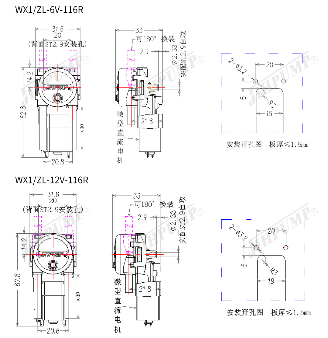 1、結構緊湊的微型蠕動泵,重量僅41g2、輸出流量可達28ml/min,輸出壓力可達1bar3、蠕動泵頭軟管進出口方向可以旋轉180°,管路排布更靈活4、采用三滾輪設計,輸送脈沖小,精度高,適用于微量添加5、有刷直流電機,自帶齒輪減速,低噪聲,運行穩定可靠性高6、自帶安裝固定孔位及卡槽,多種安裝方式,