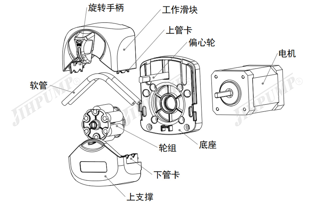 相信大多的用戶都不是很了解這類泵。蠕動泵又稱軟管泵,是一種新型的工業用泵,它是現代工業發展的產物,廣泛應用于制藥、食品、化工等行業,輸送一些帶有敏感性的、粘稠的、強腐蝕性的、具有磨削作用的、純度要求高的、以及含有一定顆粒狀物料的介質。蠕動泵系統組成:蠕動泵系統由三個部分