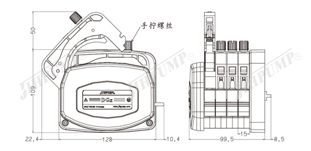 DGx是一款單通道流量在0~593ml/min之間的多通道蠕動泵產品。可提供1到4通道供選擇,通道間精度可達到1%以上。由于卡片式的結構,DGx多通道蠕動泵的體積緊湊,節約空間。卡片上具體調節機構可以對壓力和流量進行微調,去適應不同的液體和不同壁厚的蠕動泵軟管。蠕動泵采用8滾輪設計,因此DGx蠕